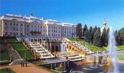 - это парадная летняя резиденция Петра Первого, расположенная неподалеку от Петербурга. В современных границах города Петродворца, который включен в границы Петербурга, объединено несколько дворцово-парковых ансамблей и отдельных архитектурно-исторических комплексов 18-20 веков. Мировую славу Петергофу принесли созвездие дворцов, коллекция и, прежде всего, фонтаны и каскады. Четыре каскада и 150 действующих фонтанов потрясают воображение. По пышности и богатству оформления, по оригинальности технических идей Петергоф превосходит взятый Петром Первым в качестве прототипа Версаль и другие европейские дворцы. Строительство Петергофа продолжалось около двух веков, он разрастался, украшался новыми произведениями выдающихся зодчих и ваятелей.